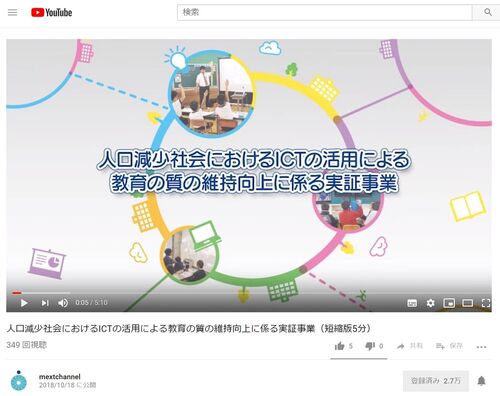 YouTubeのmextchannel(文部科学省チャンネル)で、「人口減少社会におけるICTの活用による教育の質の維持向上に係る実証事業(短縮版5分)」を見ました。 ICTを利用しての遠く離れた学校同士を繋いだ、遠隔合同授業の事例を見ることができます。もちろん、…
