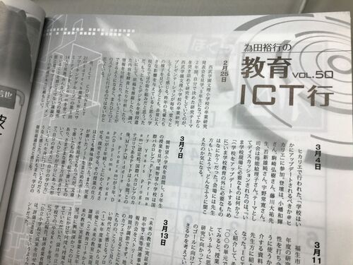 連休明けでバタバタしていて書けていませんでしたが、月刊私塾界 5月号がオフィスに届きました。5月号の特集は、「教育ICT考 S/S」です。これは仕事柄、ぜひ読んで研究しなくては。 「未之知也」のページで、私塾界の山田未知之さんが、戸田市教育委員会の戸…