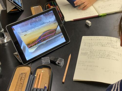 2022年9月15日に日本女子大学附属豊明小学校を訪問し、砂川俊輔 先生の担当する6年わかば組の理科の授業を参観させていただきました。 この日のテーマは「地層はどのようにしてできるのか」でした。前時に行った実験のふりかえりから授業は始まります。実験…