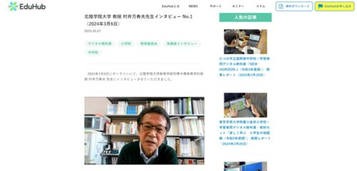 こどもの学びを支える教科書ポータルとなることを目指すEduHubのコラムにて、「北陸学院大学 教授 村井万寿夫先生インタビュー(2024年3月6日)」を執筆させていただきました。1時間ちょっとのオンラインでのインタビューが、No.1とNo.2に分けて公開されてい…