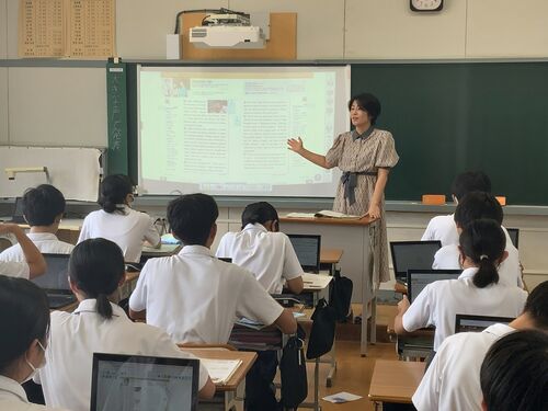2025年6月26日に渋谷区立原宿外苑中学校を訪問し、森静香 先生が担当する3年生の英語の授業を参観させていただきました。この授業は、渋谷区教育委員会の外国語担当者研修の公開授業となっていて、参加者の先生方と一緒に授業を参観しました。 ホワイトボー…