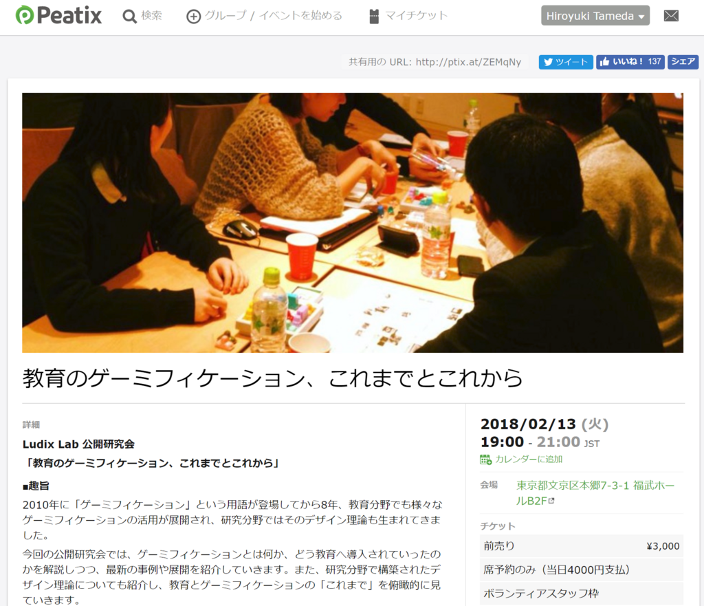 2018年2月13日に、東京大学福武ホールにて、Ludix Lab 公開研究会「教育のゲーミフィケーション、これまでとこれから」が開催されます。