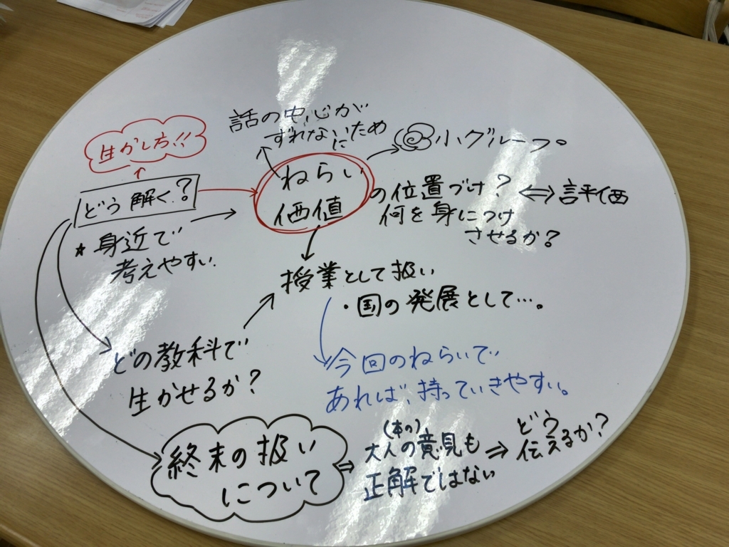 その後、著者の3人とポプラ社の編集者、そして僕も、えんたくんを使っての研究協議に参加をさせていただきました。道徳の授業で、何を「ねらい」「価値」にするのかというところから、授業の終末(締めのパート)をどのようにしようかということを先生方と考えていきました。授業を作り上げていく先生方の視点が非常に勉強になりました。