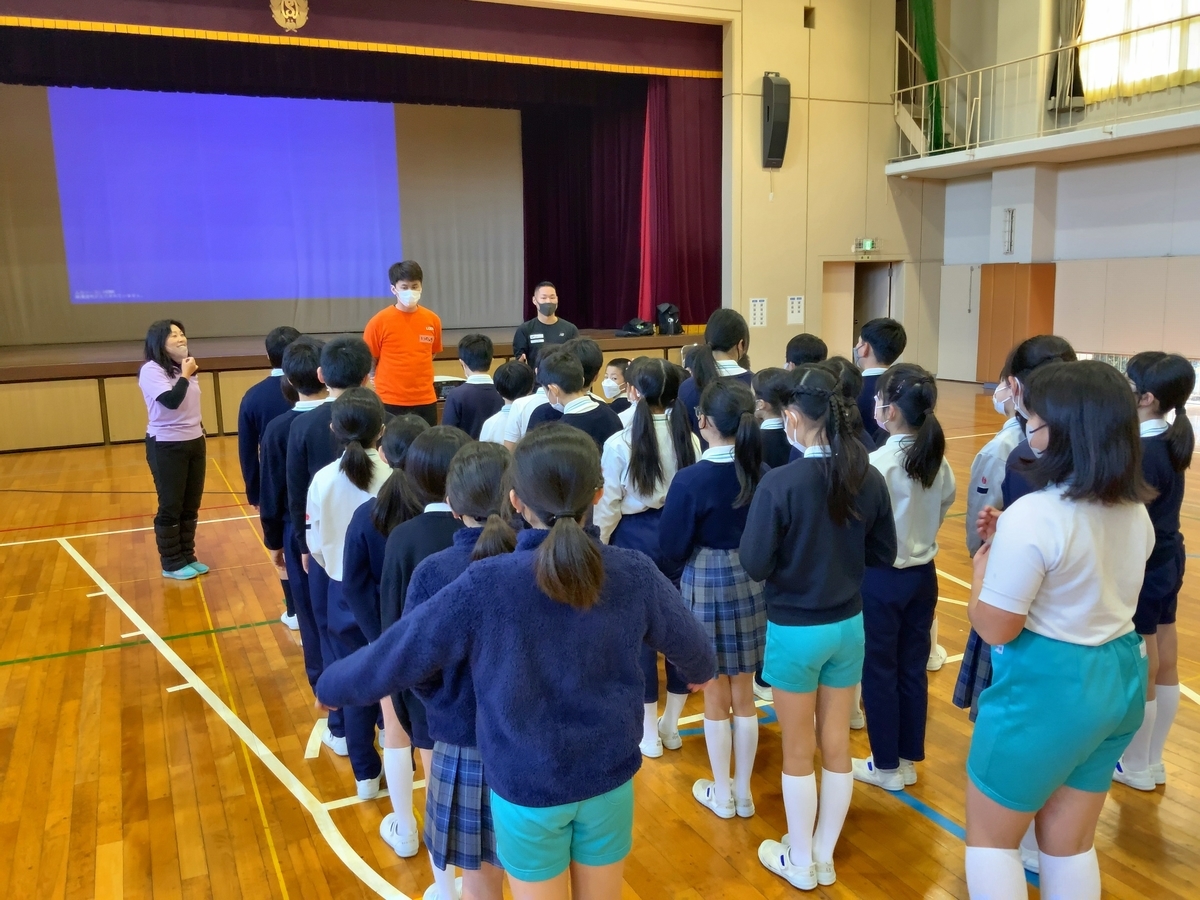 2022年12月14日に森村学園初等部を訪問し、5年生を対象にして行われたユニバーサル・ラン<スポーツ義足体験授業>の授業を参観させていただきました。授業の主催は水まわりと住宅設備のメーカーである株式会社LIXILです。LIXILでは子どもたちの多様性への理解を育むため、2017年から全国の小学校で当授業を実施しています。1時間目から3時間目に5年生が1クラスずつ、体育館で義足アスリートとの交流とスポーツ義足体験をします。全クラスがスポーツ義足体験をした後の4時間目に、5年生全クラスが集まって、義足に関する学習を入口に多様性について考える授業を行いました。