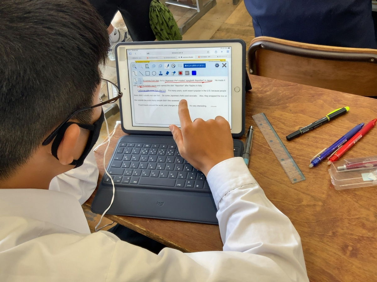 生徒たちが失敗を恐れずに英語を使っていくためのツールとして、一人1台のiPadをはじめ、テクノロジーが使われているのが印象的な授業でした。