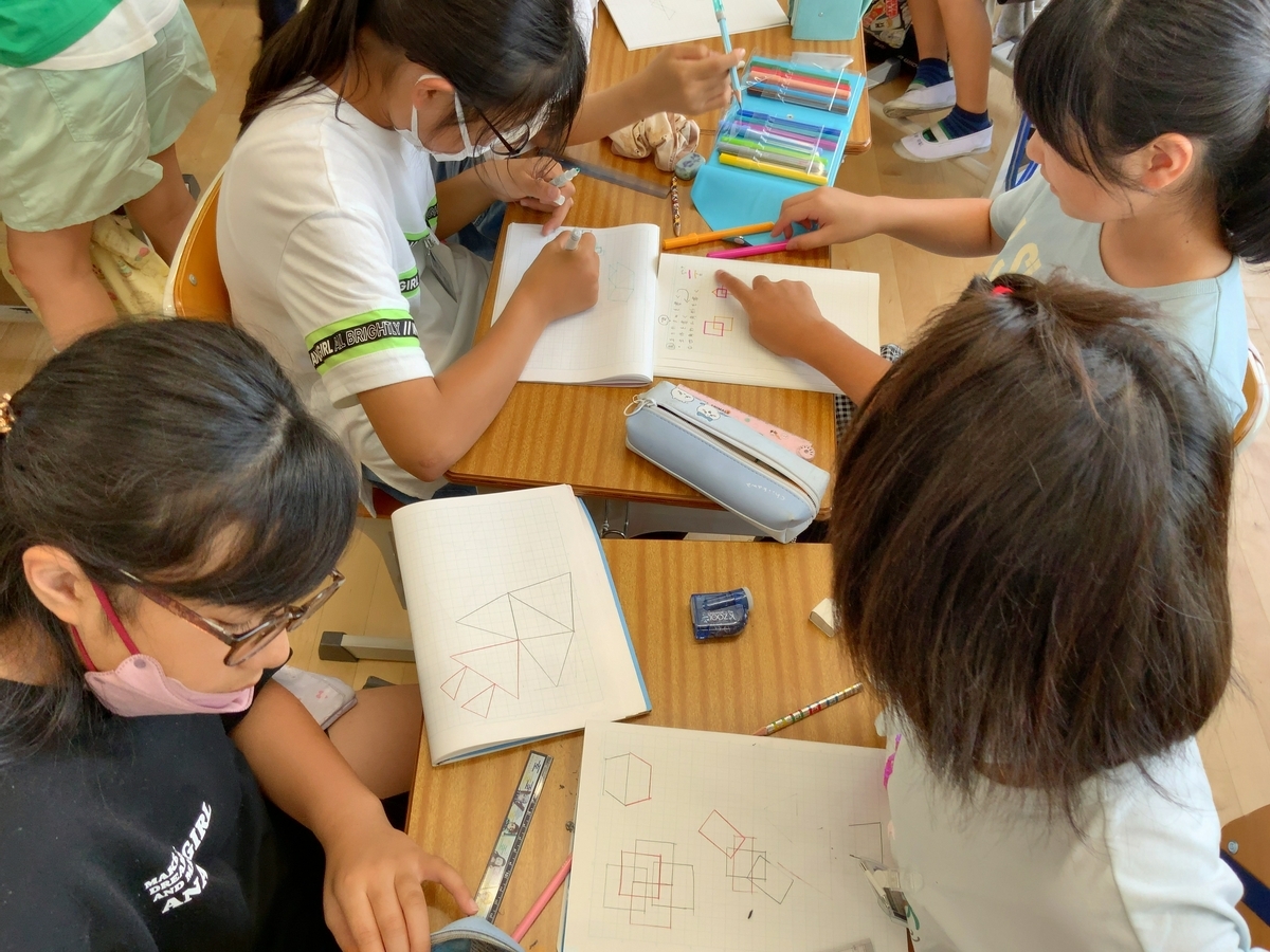 ノートに練習問題を解くよりも、ずっとたくさんのいろいろな種類の図形を自分で描いて、友達が描いたいろいろな種類の図形を見ることもできるのが、この授業の良いところだと感じました。