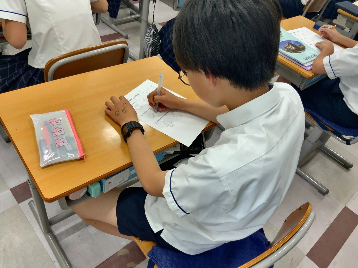 授業の途中で2枚のプリントの答え合わせをする時間があります。教室のなかでみんなやっていることが違うので、プリントの問題に取り組んでいる子も、ロイロノート・スクールで問題を作っている子も、Monoxerで問題を解いている子もいます。松原先生が「iPadを閉じてプリントに戻ってきてください」と言って、プリントの答え合わせとその解説はみんなで一緒に行っていました。